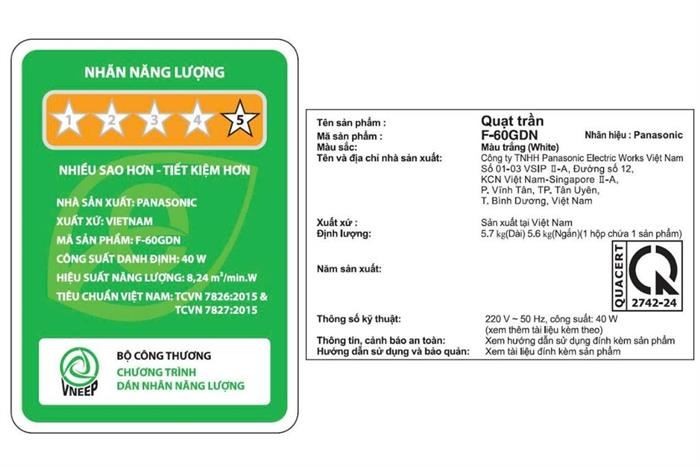 - Thương hiệu Panasonic – Nhật Bản, sản xuất tại Việt Nam.