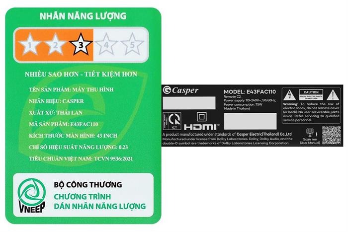 Android Tivi Casper FHD 43 inch E43FAC110 là giải pháp giải trí phù hợp với người dùng đang tìm kiếm một chiếc tivi dễ dùng, hình ảnh sắc nét và nhiều tính năng hỗ trợ thông minh. Với thiết kế gọn gàng, hệ điều hành Android thân thiện, âm thanh Dolby Audio và các kết nối không dây tiện lợi, sản phẩm đặc biệt thích hợp cho gia đình trẻ, sinh viên hoặc người dùng cơ bản muốn nâng cấp trải nghiệm xem tại nhà.
