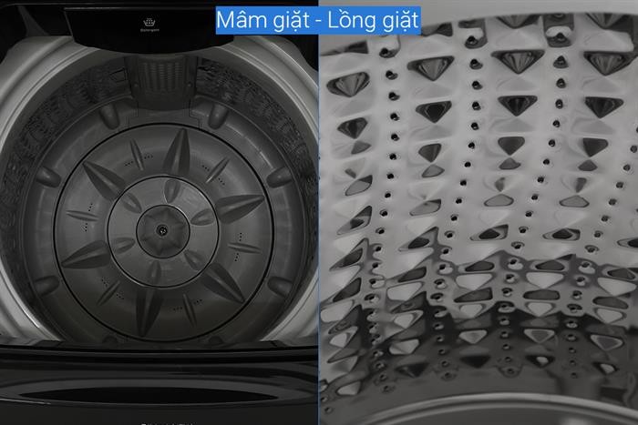 – Lồng giặt bằng thép không gỉ, có tính thẩm mỹ cao, hạn chế mảng bám, vi khuẩn tích tụ.
