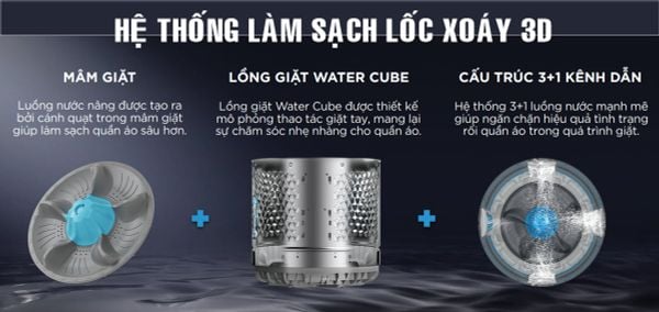 Máy giặt Midea hệ thống làm sạch lốc xoáy 3D