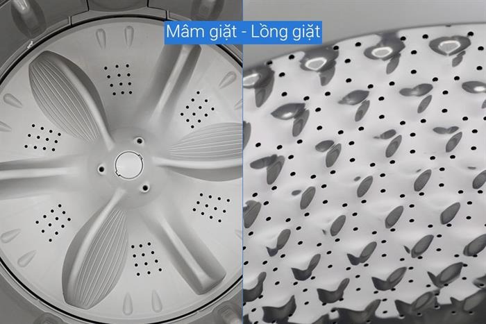 – Lồng giặt được chế tạo từ thép không gỉ, có khả năng chống bám bẩn và chịu lực tốt, góp phần bảo vệ quần áo khỏi xơ sợi hoặc hư hỏng sau nhiều lần giặt.