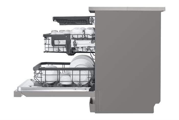 – Máy rửa bát LG này được thiết kế bên trong gồm có 3 khay rửa: khay dao muỗng, khay trên và khay dưới.