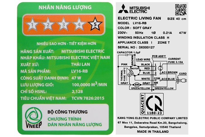 – Mẫu quạt Mitsubishi này có 2 chế độ gió:
