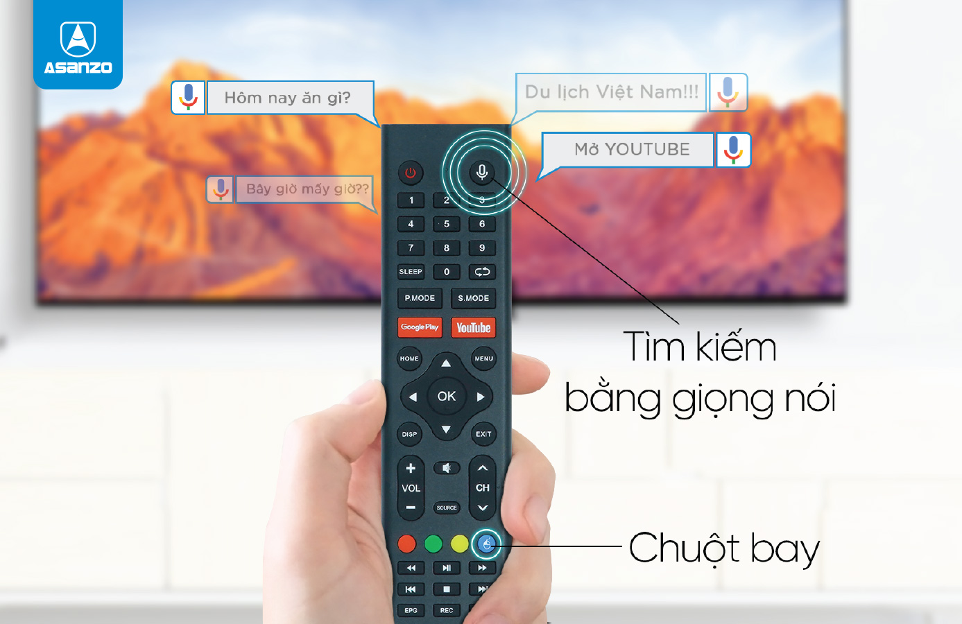 + Lần đầu kết nối: Hướng remote vào mắt nhận TV (điều khiển như remote hồng ngoại thông thường) –> nhấn vào nút voice search trên remote đồng thời mở Bluetooth trên TV –> Remote phát Bluetooth và TV quét thiết bị, khi tên thiết bị ASG RC hiện lên, nhấn vào tên Thiết bị ASG RC để kết nối.