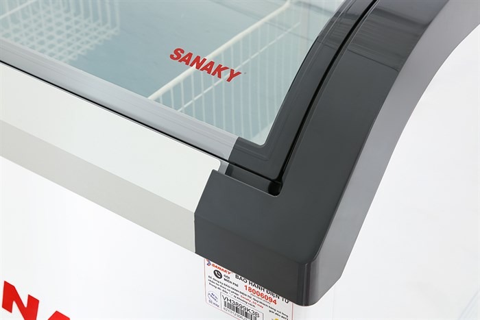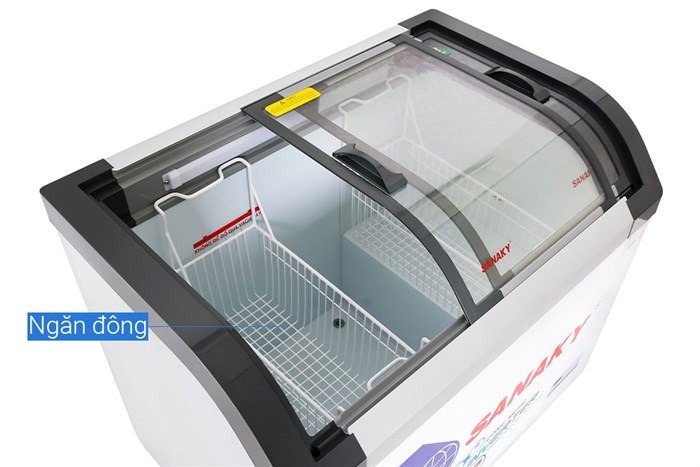– Bên ngoài: Chất liệu thân tủ đông Sanaky được làm bằng thép sơn tĩnh điện, có khả năng chống gỉ sét và chống oxy hóa tốt, độ bền cao. Cửa tủ làm bằng kính cường lực trong suốt có thể quan sát dễ dàng thực phẩm bên trong, đồng thời cửa còn được thiết kế dạng cửa lùa 2 cánh giúp người dùng lấy hoặc cho thực phẩm vào tủ thuận tiện hơn.