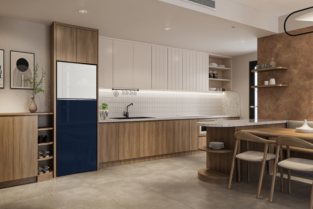 – Chất liệu mặt cửa kính cao cấp, tăng thêm sự sang trong cho gian bếp, duy trì tính thẩm mỹ cao, sử dụng bền lâu, thiết kế phẳng với tay cầm ẩn tinh tế.
