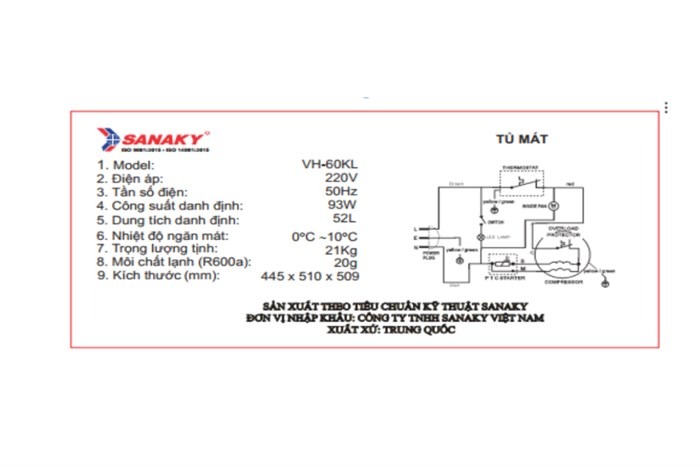 Tủ mát mini Sanaky 52 lít VH-60KL